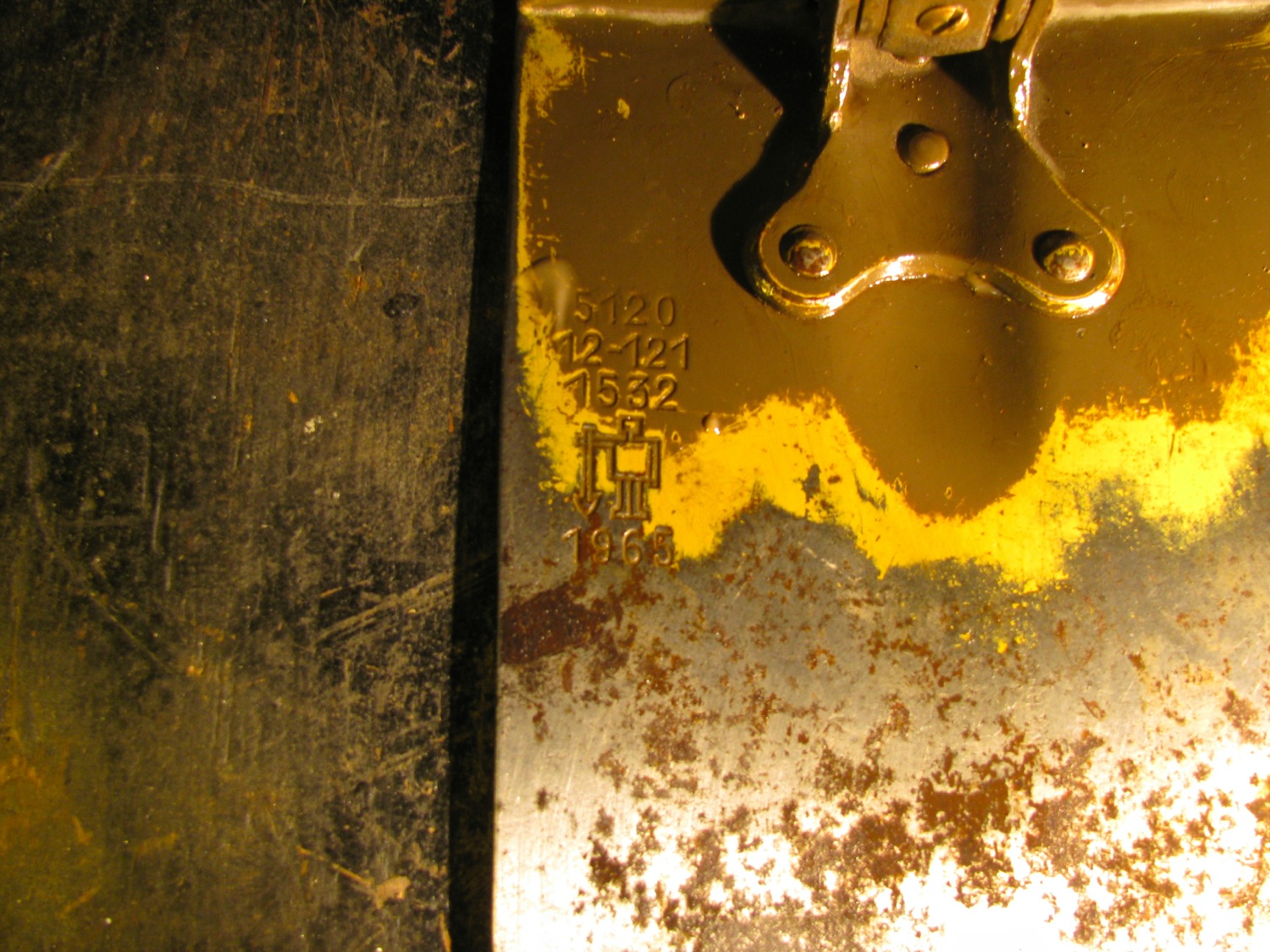 Last week or thereabouts, I went to the local metal re-cycling yard to drop off some scrap and I came away with two finds. A nice section of 6″ stainless pipe (will be body of homemade muffler project) and this kinda cool jerry can. At first, and this is an excusable mistake as I am not a jerry can expert :), I thought it was a fuel container. But the internet came to my rescue and I identified it as a water can. Lots of info on jerry can can be found here. As far as I can tell, it is a water can, designed by Cavalier and made by McCord (the McCord part is a guess of sorts). I think 44 refers to the date, 1944. Anyhoo, the can is in pretty good shape and I wonder if I can’t use it for fuel (and use funnel). But I wonder if the inner coating will be affected by gasoline. Anyone know?
