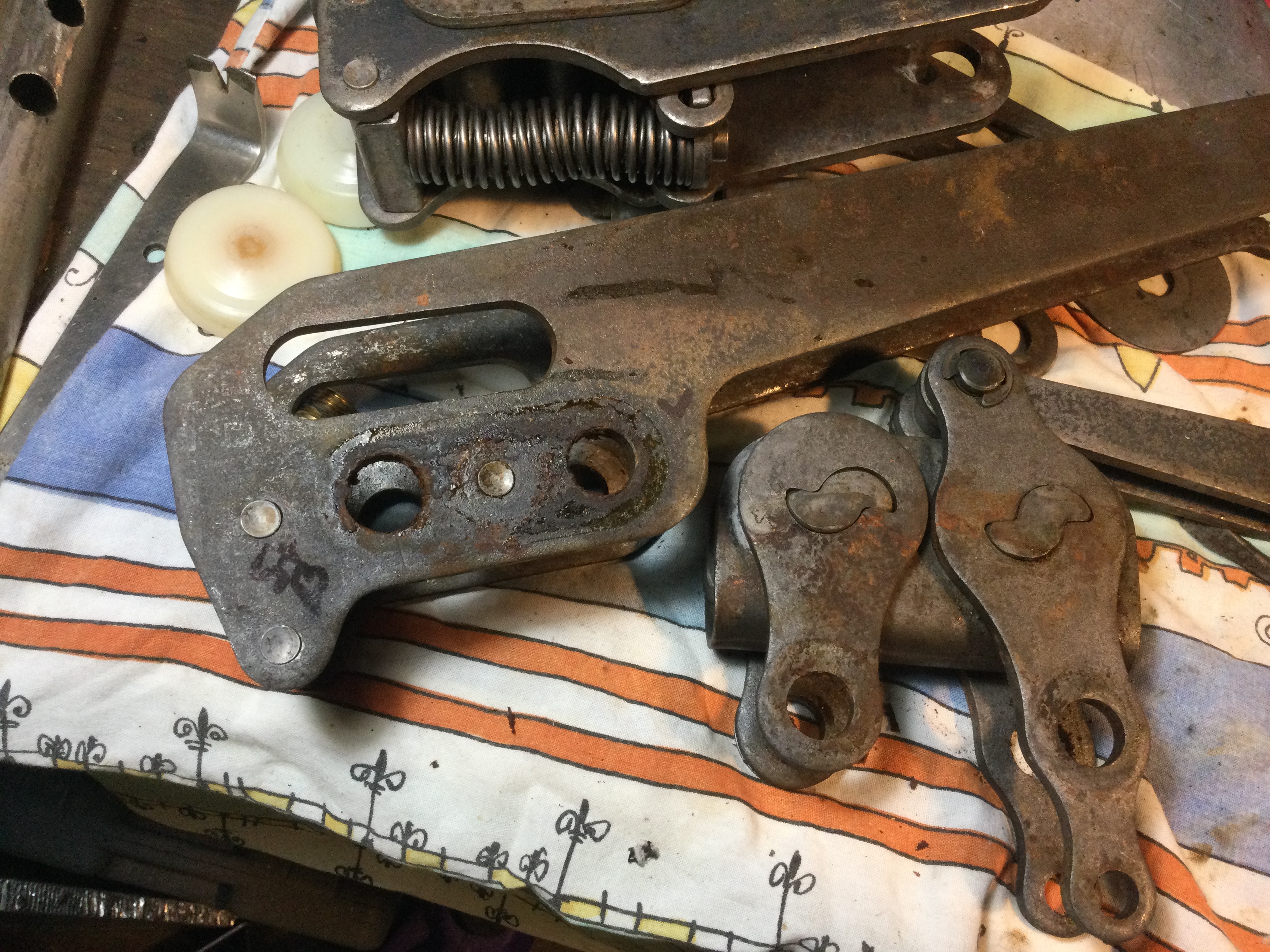 It was pretty dirty and missing the cable and handle. And a couple of the nylon bushings were worn, and one bushing missing. The idea was just to take apart and clean up, but as you’ll see I had the case and levers powder coated. And I made new plastic bushings.