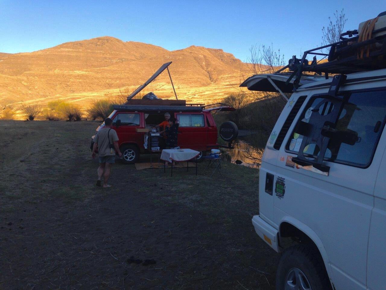 The motivation for the trip was that they were just about to tar on of the famous mountain passes whereby one gains access from South Africa into Lesotho. It will certainly change the region’s economy and make it easier for the locals to trade but at the same time at a huge loss in terms of pristine non developed mountains. So on the 24 of Sept 2014, eight VW Syncro’s headed for Cobham Nature Reserve just outside Himeville which is in the lower foothills of the Drakensburg to start this epic adventure.