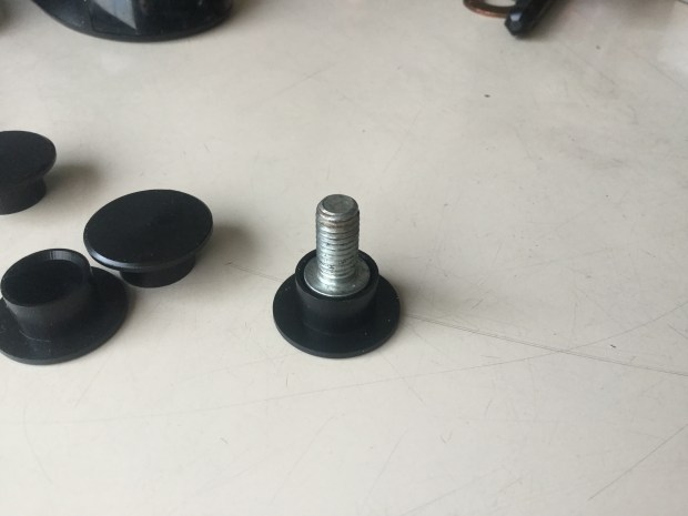 Oh and the old stock knob that screwed into the tube on top of the old style leg, I replaced with a short bolt which hits the flat spot machined on the side of the adapter. Don’t need to touch that again, the table top is held on by the through bolt ( the through bolt which has the holy handle).