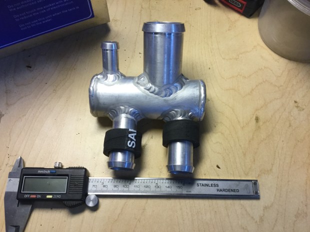 A few months ago I swapped in an aluminum version of the stock plastic coolant distribution manifold. The 2wd and Syncro versions differ in shape but not in function.
