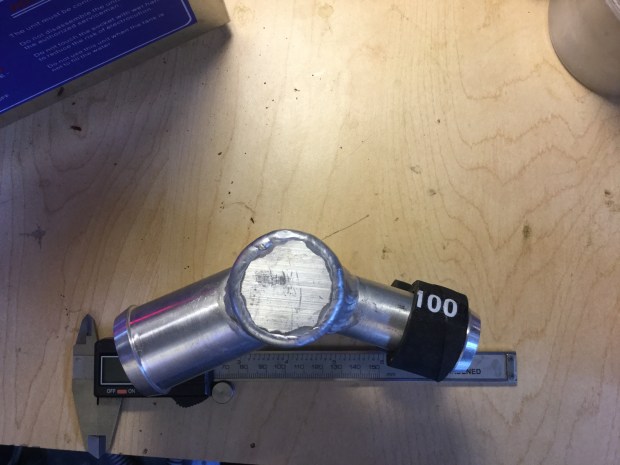The ends of the box section are filled with section of 2″ aluminum tubing, half circles 1″ thick. Welded and blended.