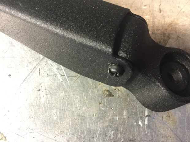 Tapped each end M3. I have some plastic pan head M3 machine screws, I’ll get some black stainless versions if I decide this is a good method. What gives me pause is I have to bend the wings of the arm apart to get the shouldered hinge pin, in the hub, inserted into arm. It’s kludgey.