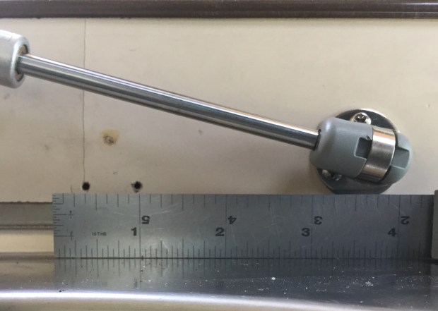Hey you know the strut I used to support the westy kitchen lid? This blog post. I had three left over looking for a home. Got to use two today in my old and venerable Thule ski box. Phil is wrong when he says it’s a clunky, ugly, and heavy old thing. Its a classic, and it’s strong with double wall construction.