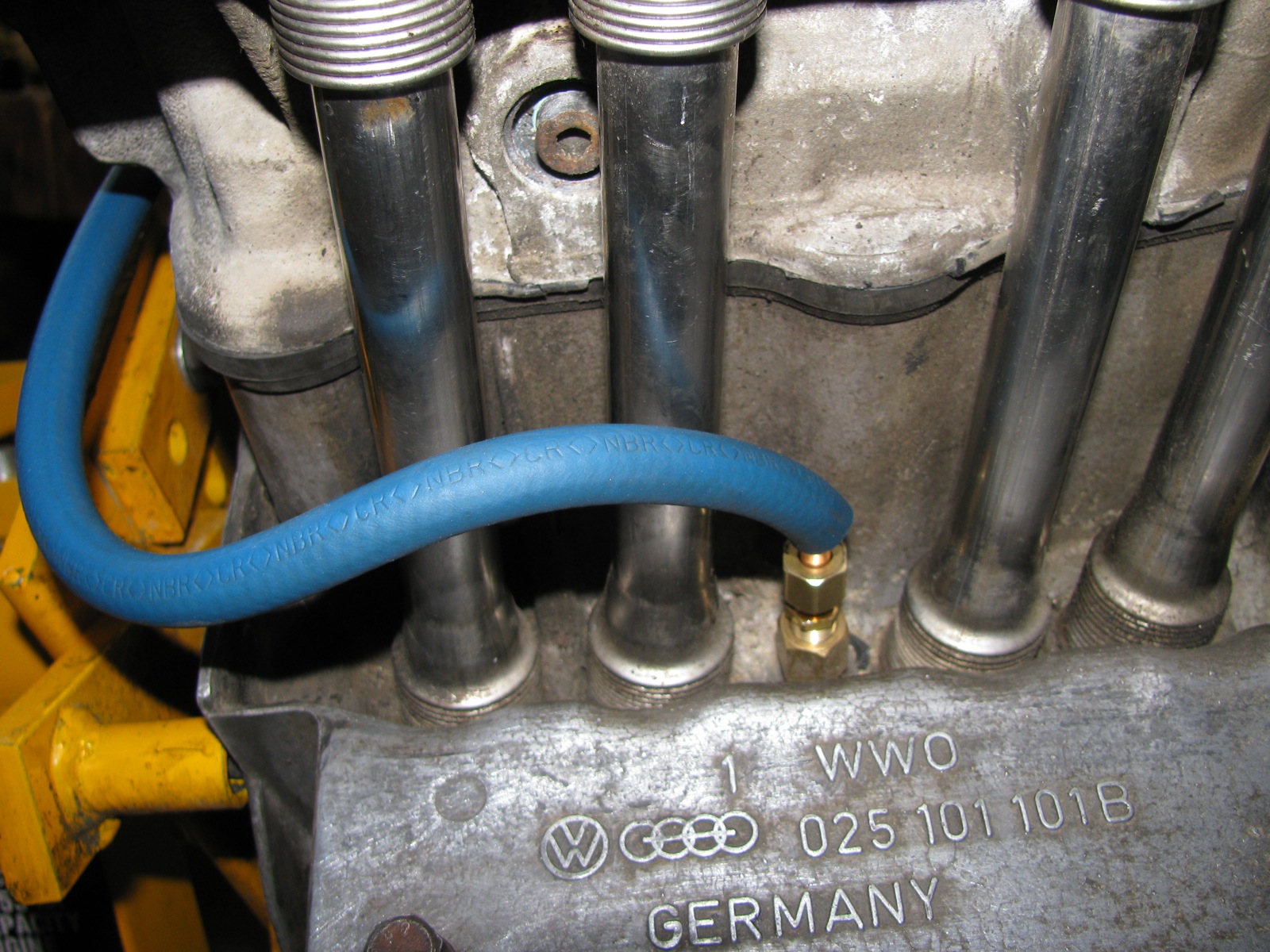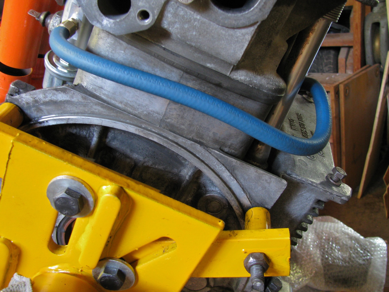 Been fooling around with relocating the high and low oil pressure switches so that I could add an oil pressure gauge sender and an oil temperature sender. There are commercially available kits to do this, but once again as I am cheap and keen to use the lathe, I made my own version (heavily influenced/inspired by Tencentlife’s work, shown here). A bit of aluminium rod, machined some flats and tapped some holes, some 1/4″ soft copper, compression fittings and a bit of fuel line to cover the copper. I used my spare motor to mock up install, probably needs more tweaking in the line, and will perhaps have to make a hole/slot in the rocker shield. Relocating the rearmost (is it the low pressure or high pressure? Can’t recall – ok, low pressure sender on left side, between pushrod tubes, high pressure sender on rear, below and to right of oil filter mount boss) sender frees up that spot for a temp sender.